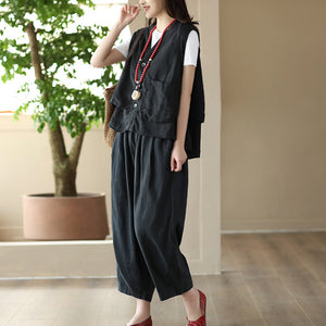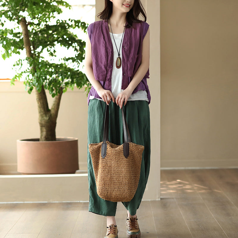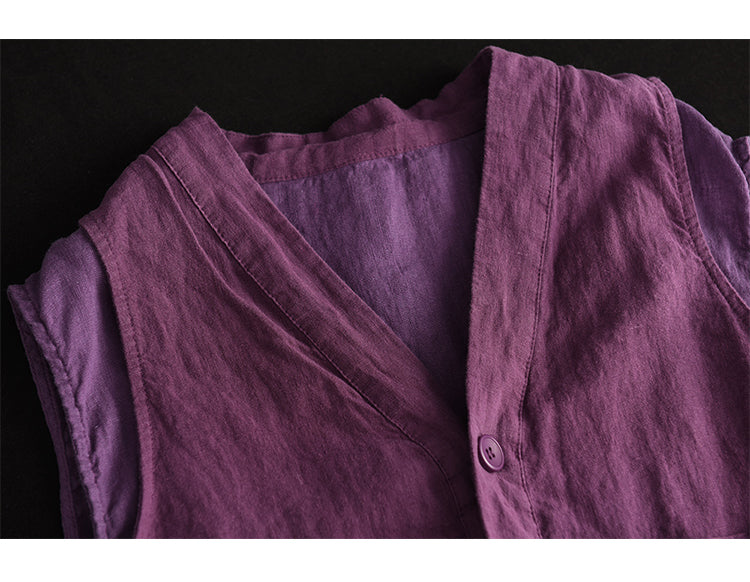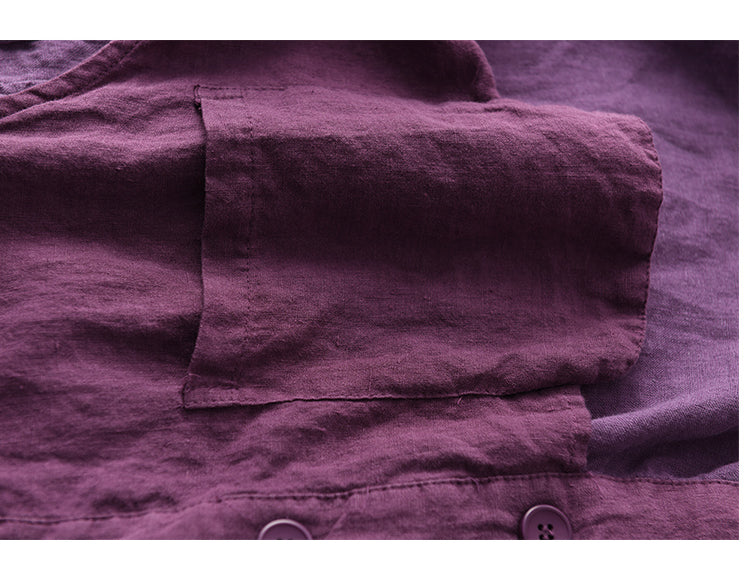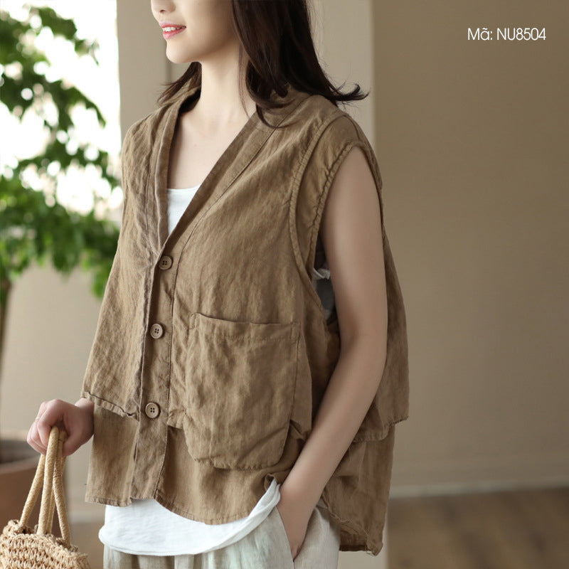 Áo sơ mi linen sát nách cổ V kiểu hai lớp túi vuông - NU8503