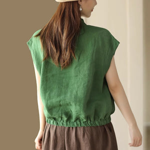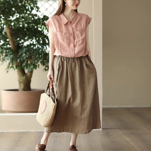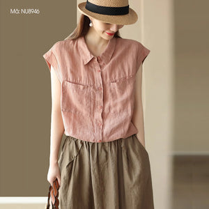 Áo sơ mi linen sát nhách cổ đức hai túi vuông vạt bo - NU8946