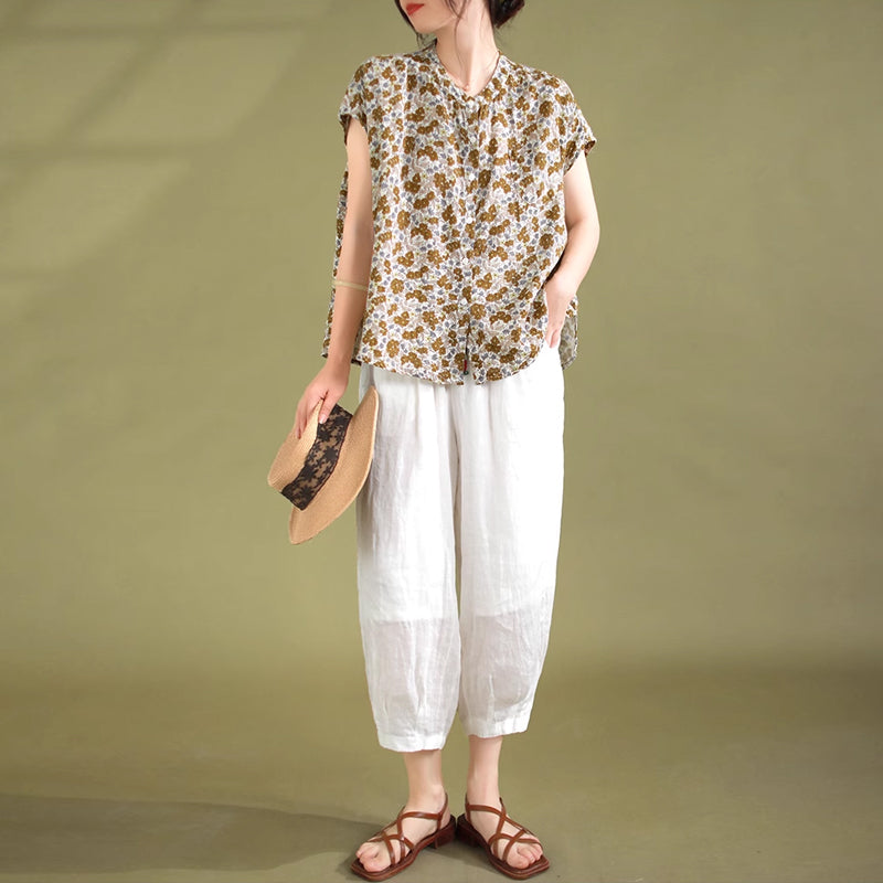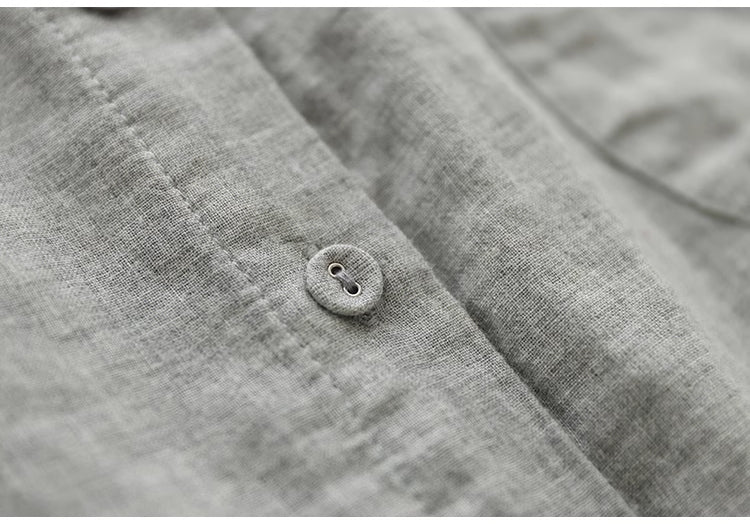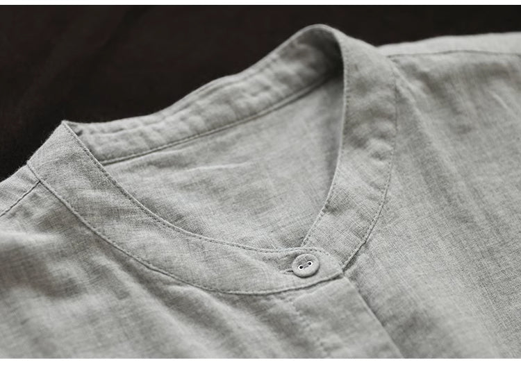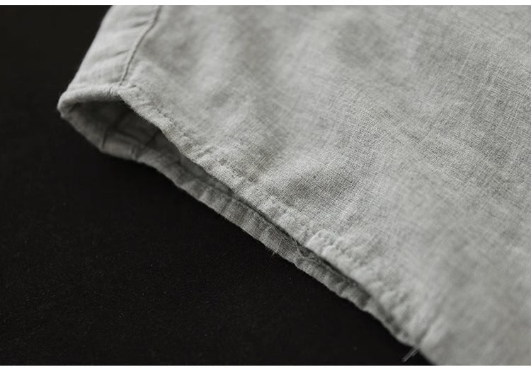 Áo sơ mi linen sát nhách cổ tàu in hoa liti một túi nhỏ - NU8927