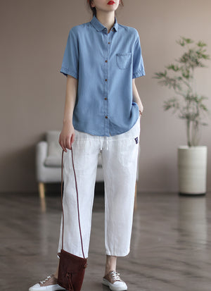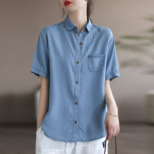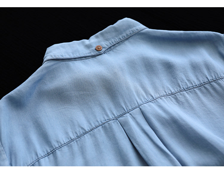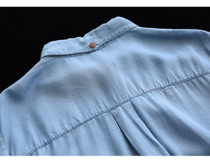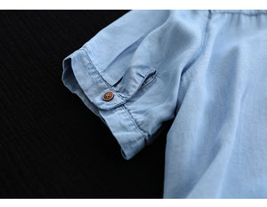 Áo sơ mi ngắn tay cổ đức khuy kiểu một túi tròn - NU8159