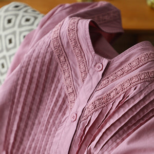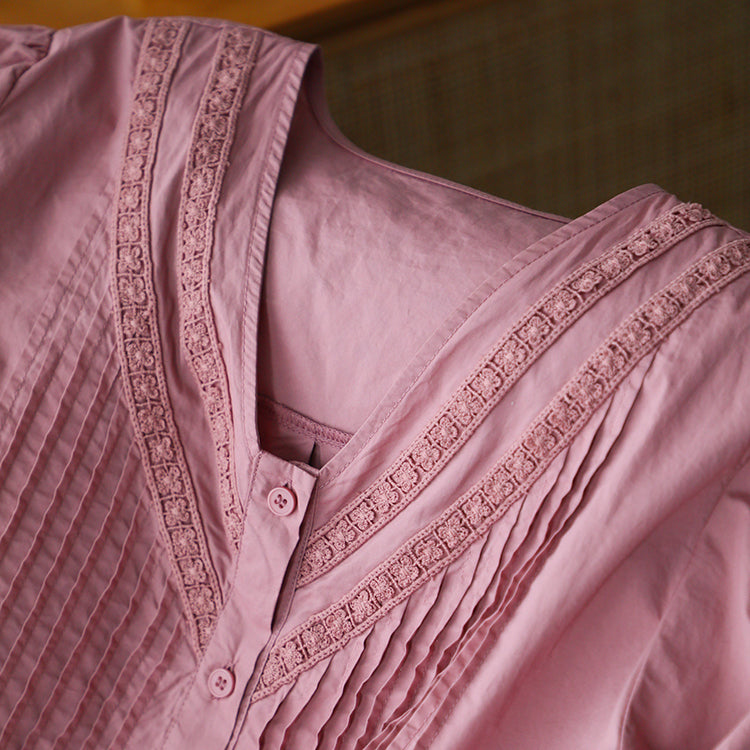 Áo sơ mi ngắn tay cổ V thêu ren xếp ly - NU8828