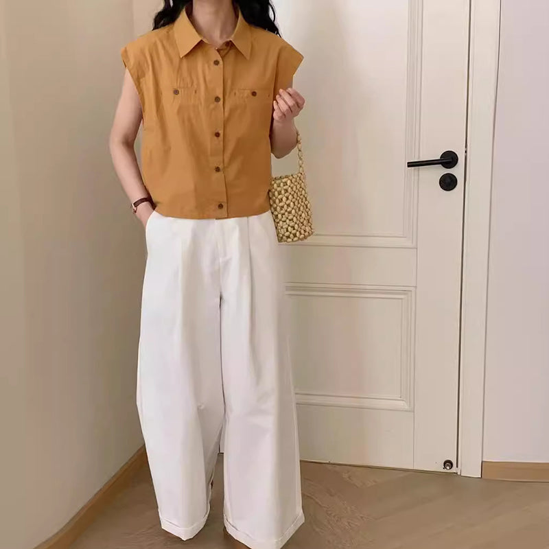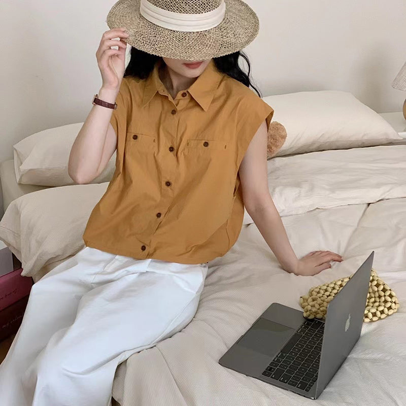Áo sơ mi sát nách cổ đức hai túi kiểu - NU10266