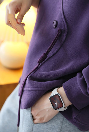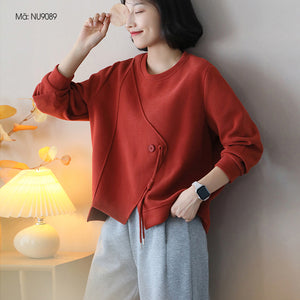 Áo T-shirt dài tay cổ tròn đính khuy - NU9089
