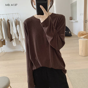 Áo T-shirt dài tay cổ tròn đơn sắc - A133