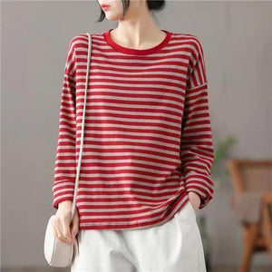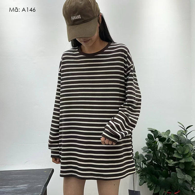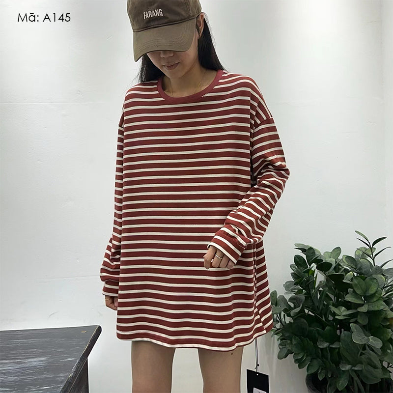 Áo T-shirt dài tay cổ tròn form dài kẻ sọc - A145