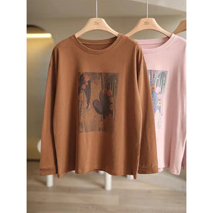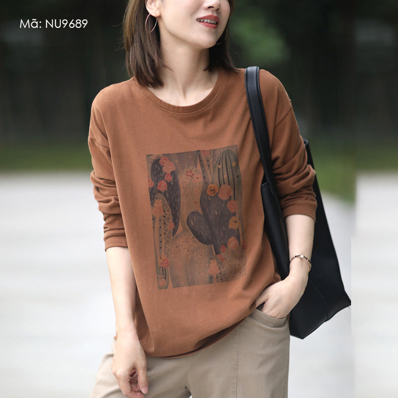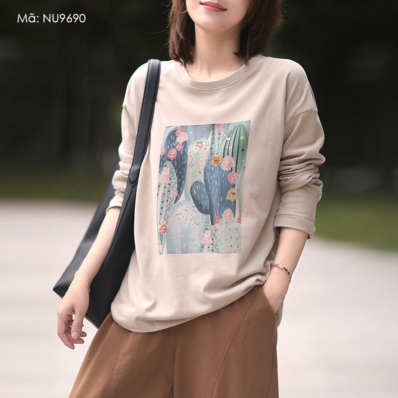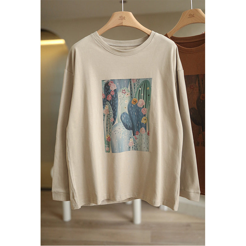 Áo T-shirt dài tay cổ tròn in cây Xương rồng - NU9689