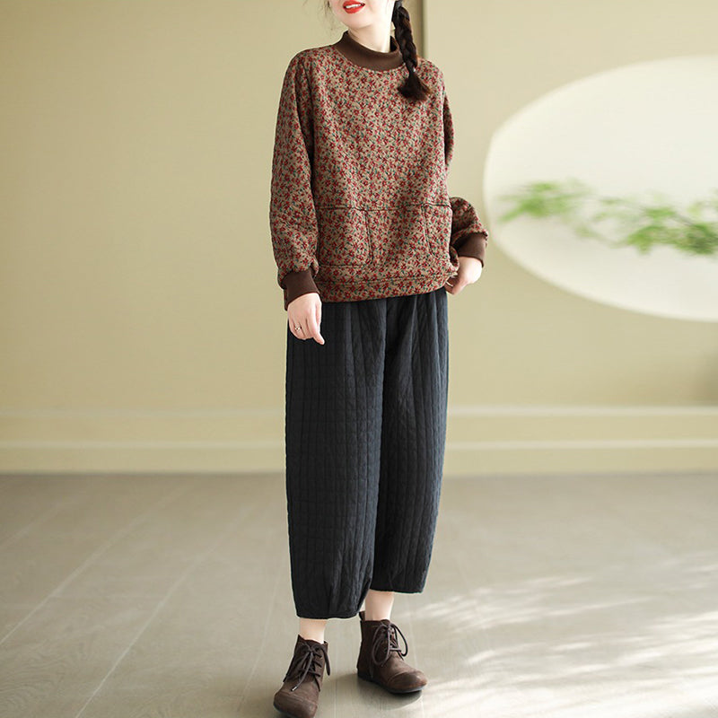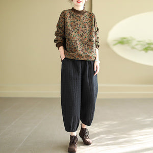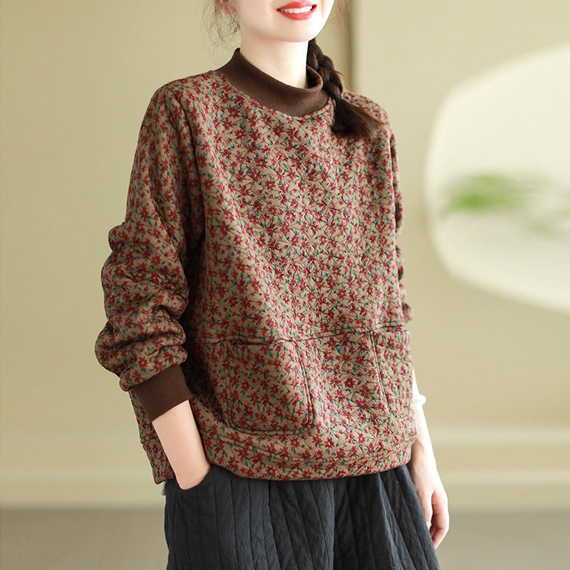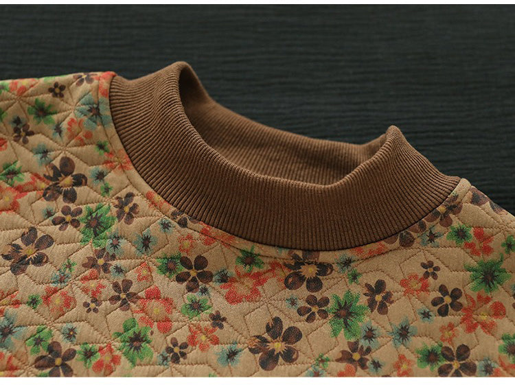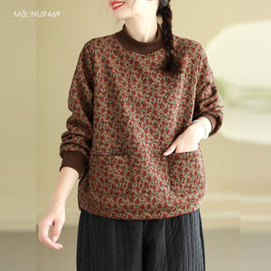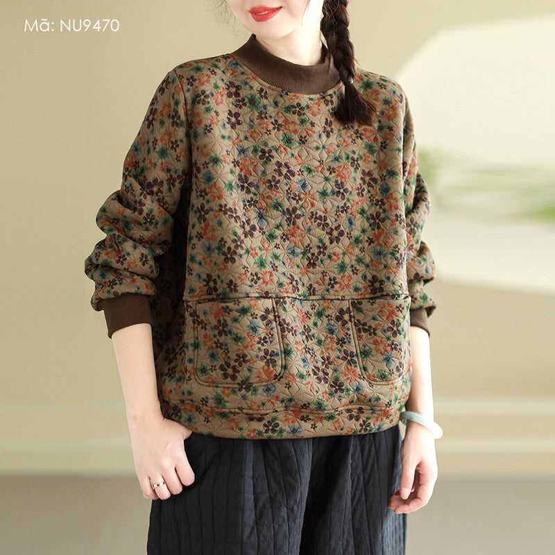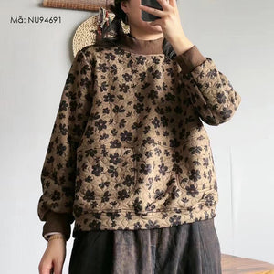 Áo T-shirt dài tay cổ tròn in hoa lá ngôi sao - NU9469
