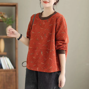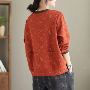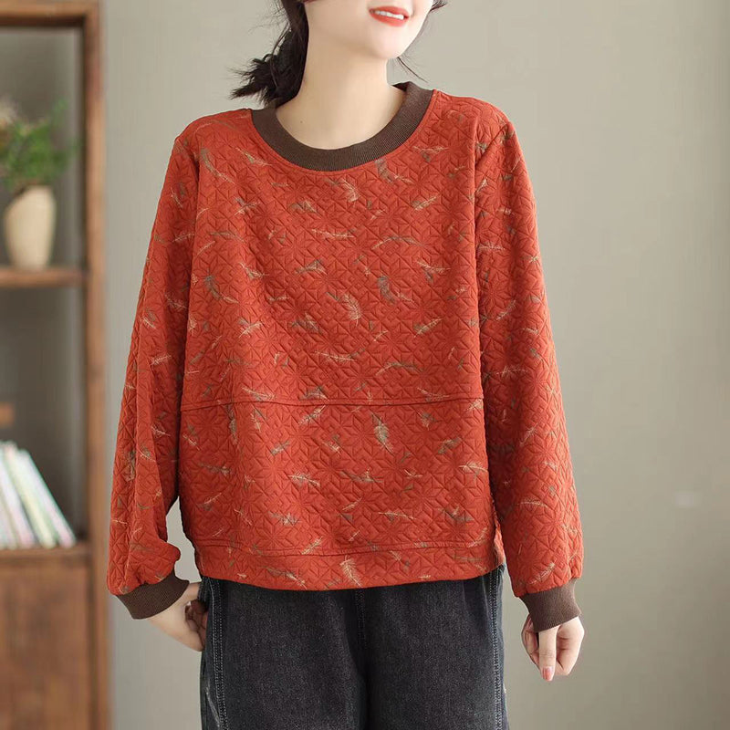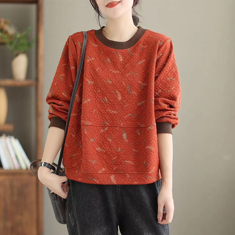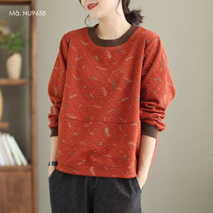 Áo T-shirt dài tay cổ tròn in những chiếc lông vũ - NU9658