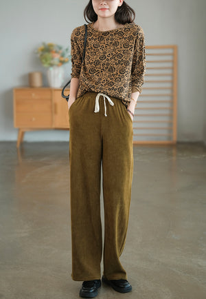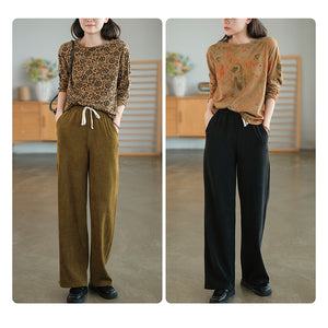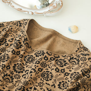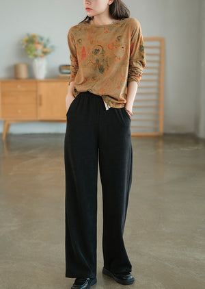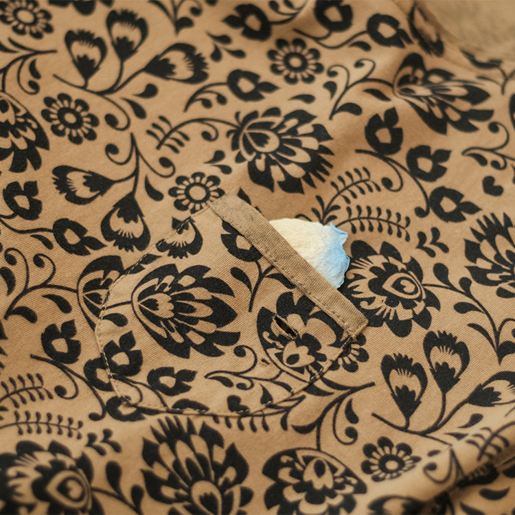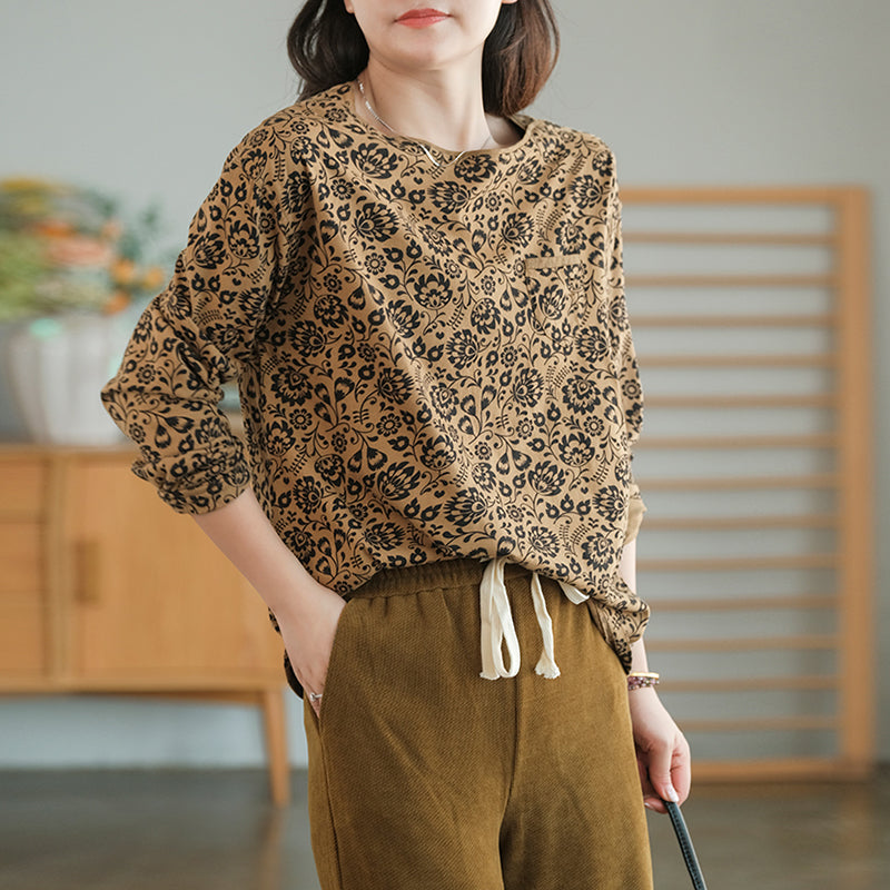 Áo T-shirt dài tay cổ tròn in retro một túi nhỏ - NU7781