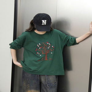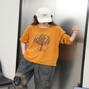 Áo T-shirt dài tay cổ tròn thêu cây cội nguồn - A255