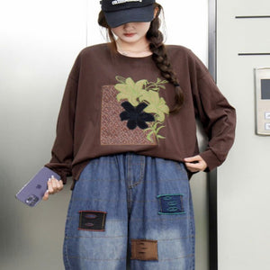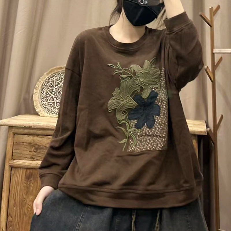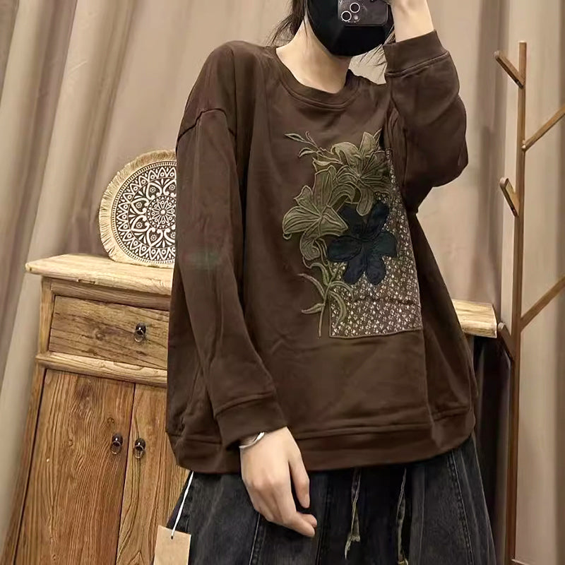 Áo T-shirt dài tay cổ tròn thêu hoa ly - A257