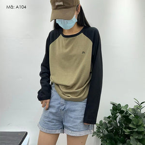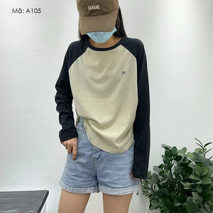 Áo T-shirt dài tay lệch màu cổ tròn thêu M - A104