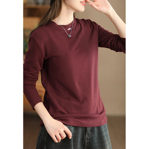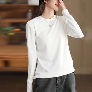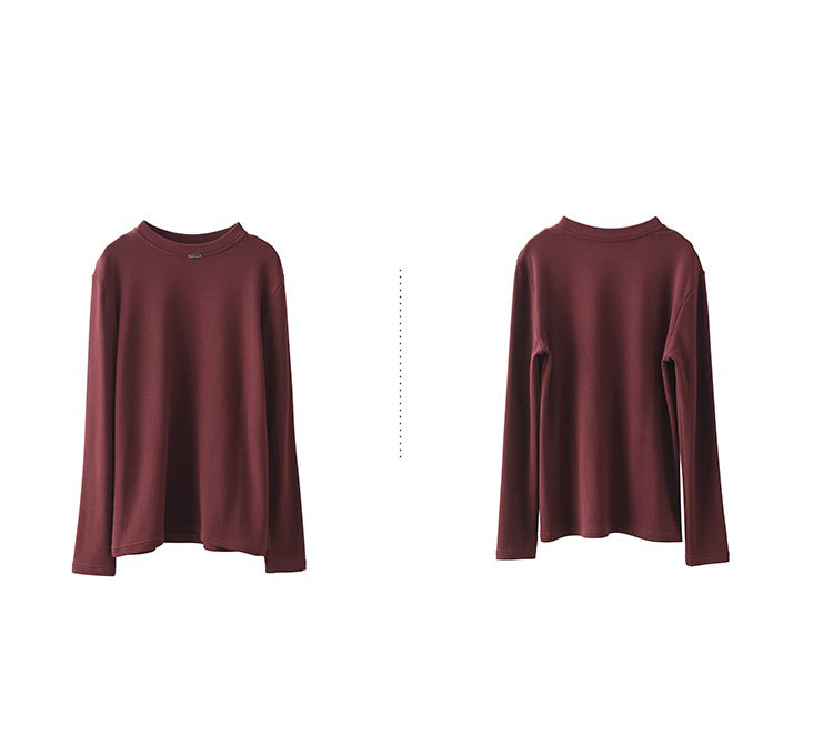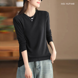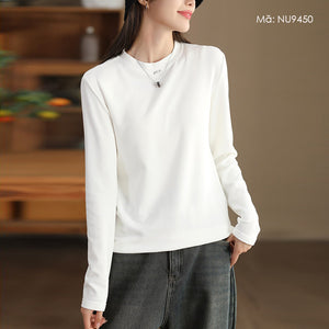 Áo T-shirt dệt kim dài tay cổ tròn lót nhung - NU9448