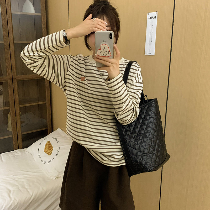 Áo T-shirt dệt kim dài tay kẻ sọc cổ tròn - A170