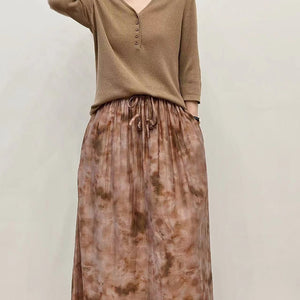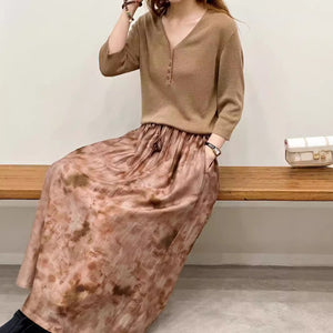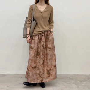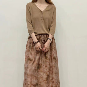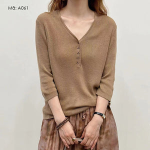 Áo T-shirt dệt kim tay lửng cổ V đơn sắc - A061