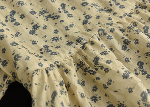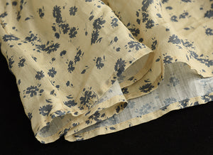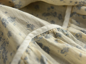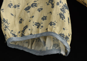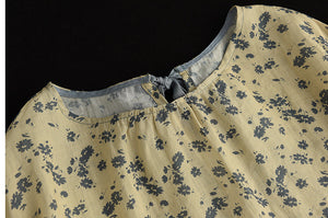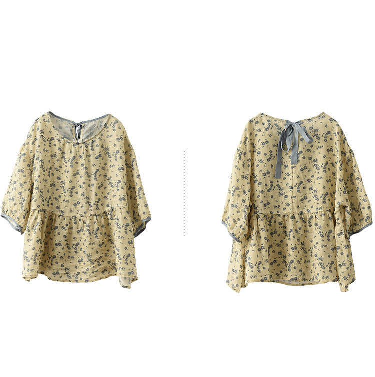 Áo T-shirt linen ngắn tay cổ tròn thắt nơ sau in hoa lá - NU7406