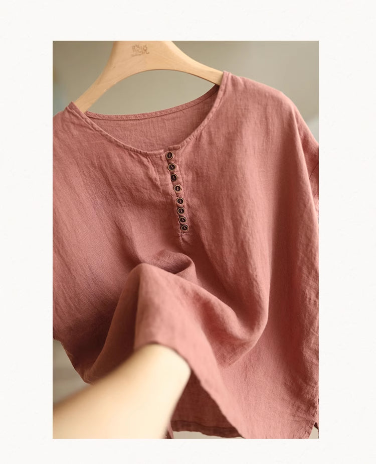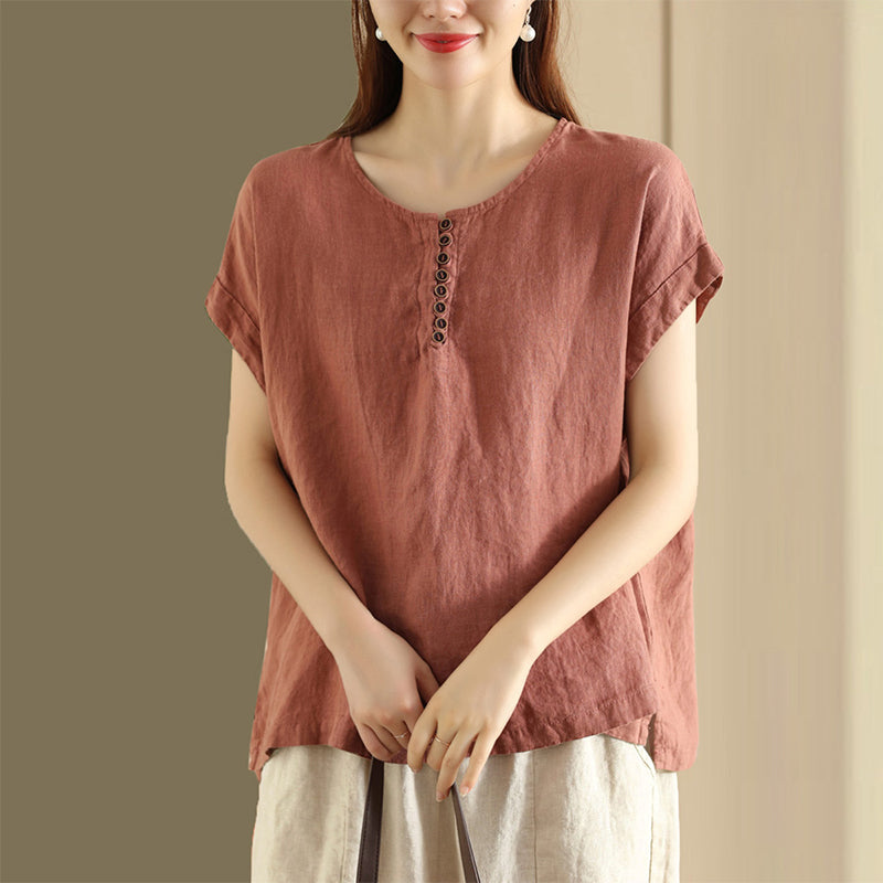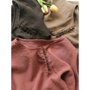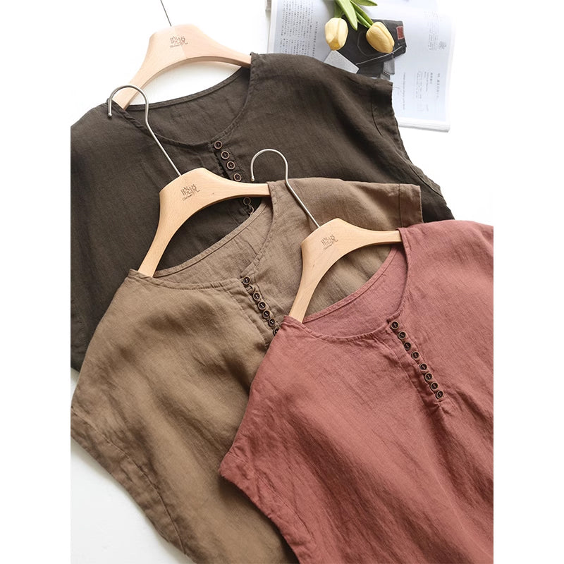 Áo T-shirt linen sát nách cổ tròn khuy cài form rộng - NU9052