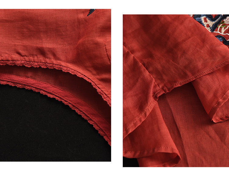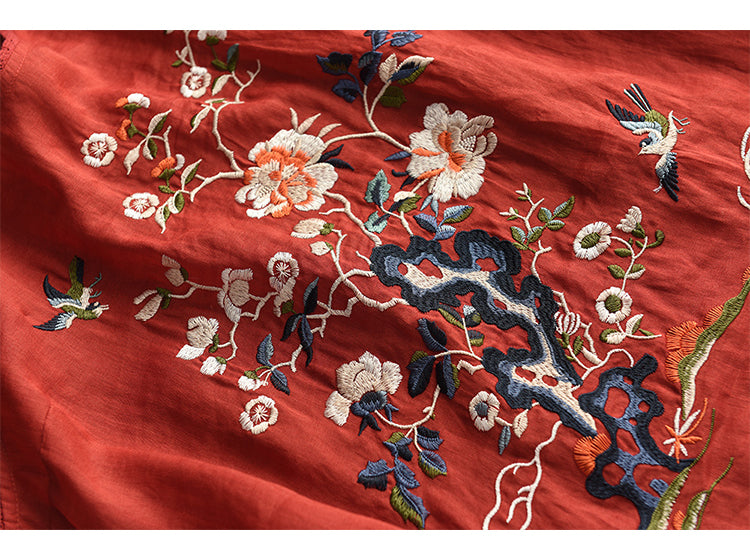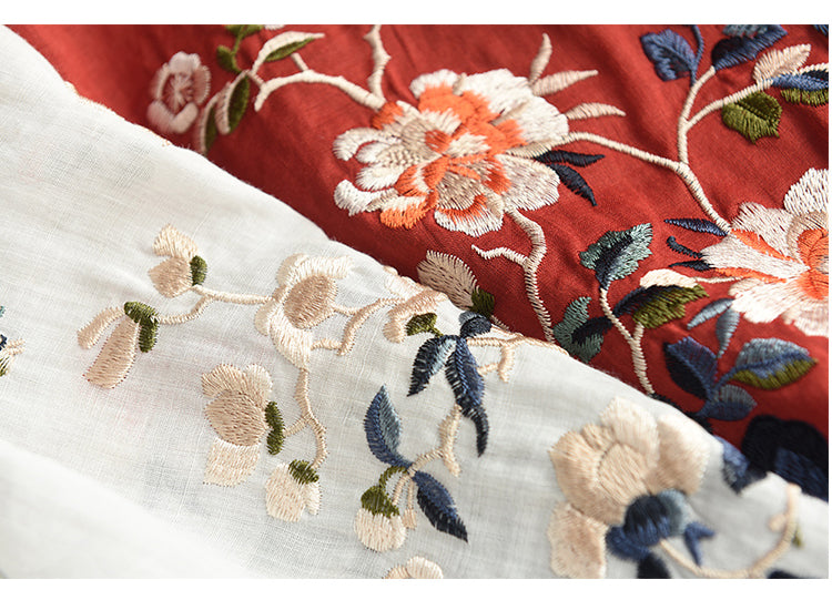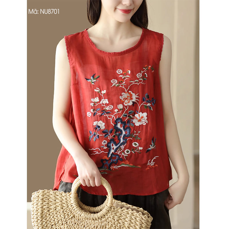 Áo T-shirt linen sát nách cổ tròn thêu tranh - NU8700