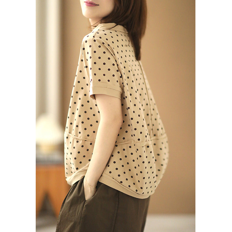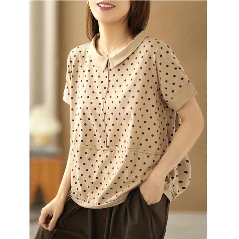 Áo T-shirt ngắn tay cổ pipi chấm bi - NU7292