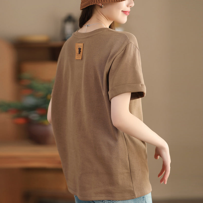 Áo T-shirt ngắn tay cổ tròn dáng rộng một màu - NU9886