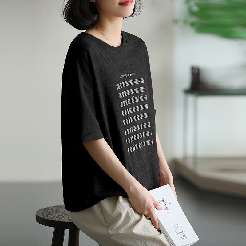 Áo T-shirt ngắn tay cổ tròn in bản nhạc - NU10223