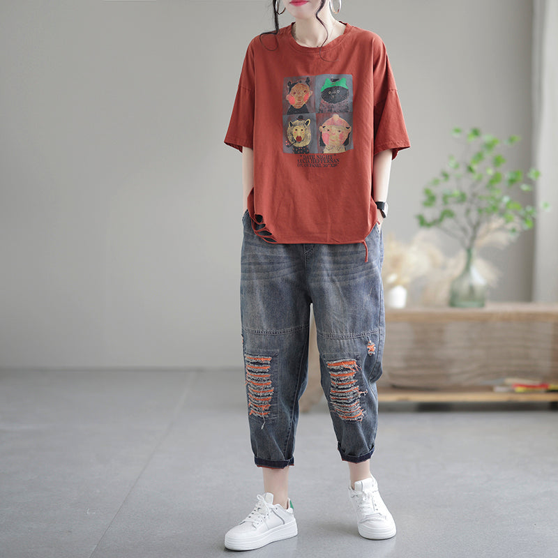 Áo T-shirt ngắn tay cổ tròn in chân dung hoạt hình - NU8350