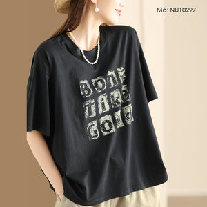 Áo T-shirt ngắn tay cổ tròn in chữ Bona - NU10297