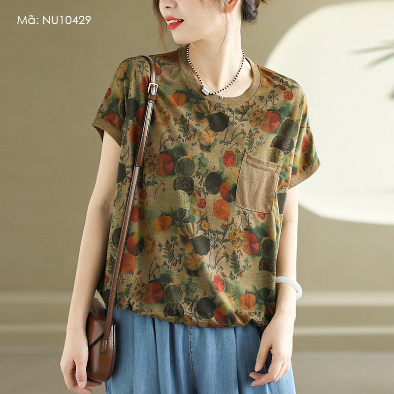 Áo T-shirt ngắn tay cổ tròn in những chiếc ô một túi - NU10429