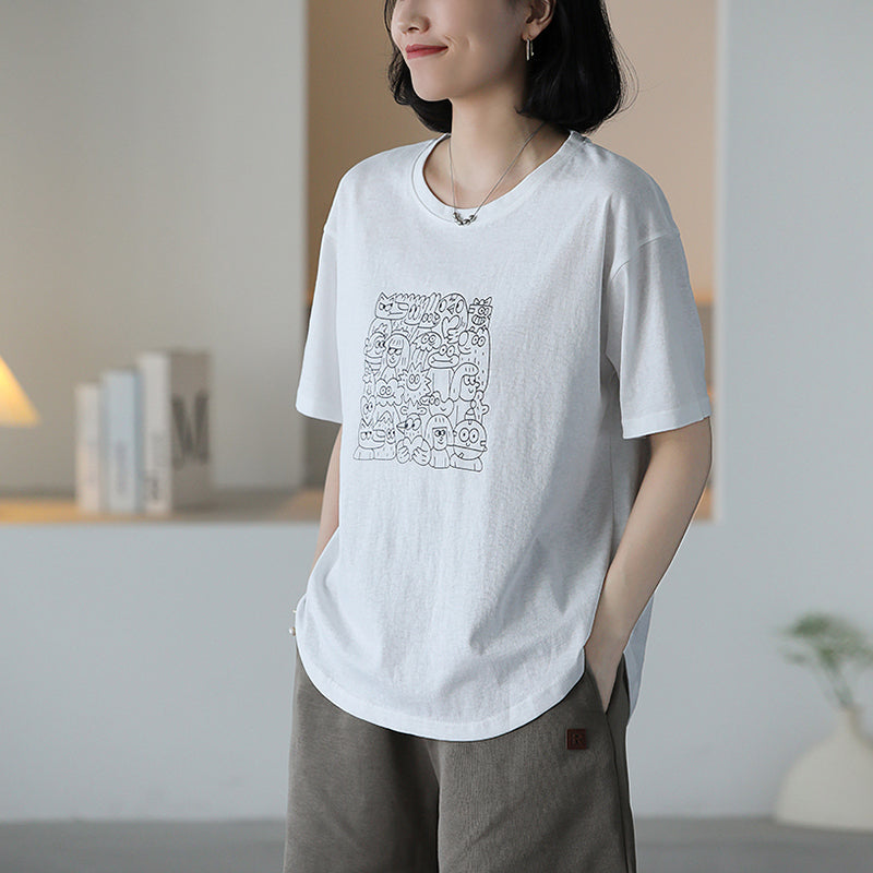 Áo T-shirt ngắn tay cổ tròn in những nhân vật hoạt hình - NU10368