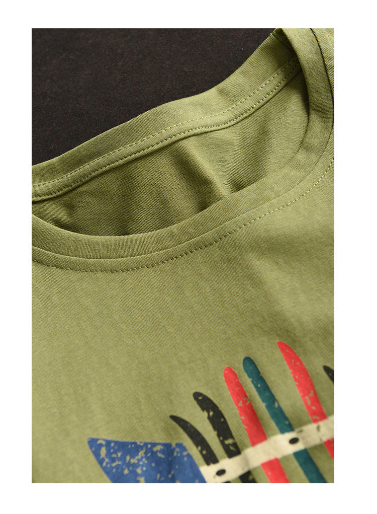 Áo T-shirt ngắn tay cổ tròn in xương cá retro - NU10438