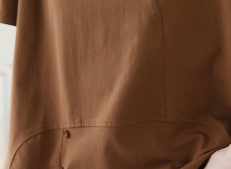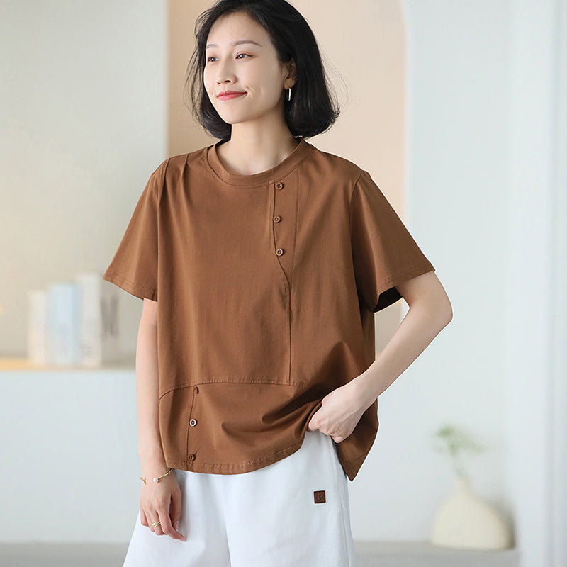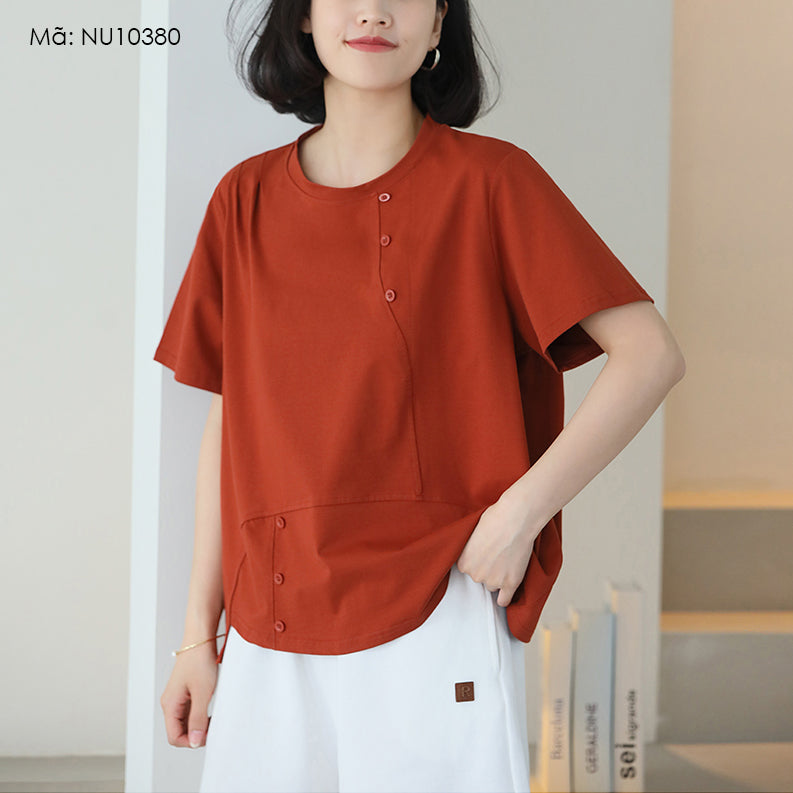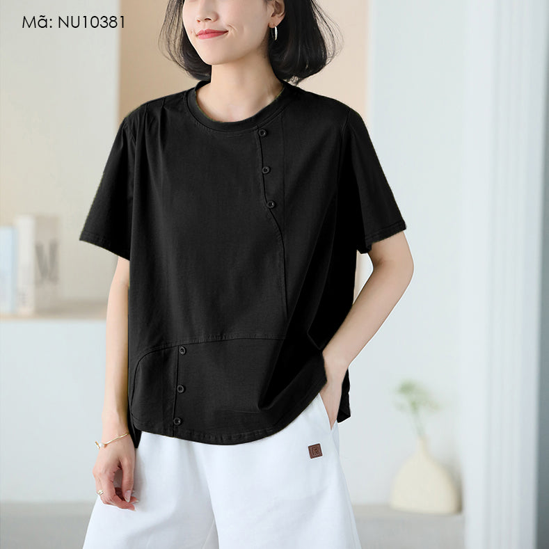 Áo T-shirt ngắn tay cổ tròn kiểu đính khuy lệch - NU10379