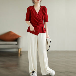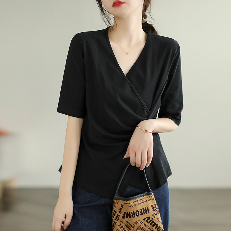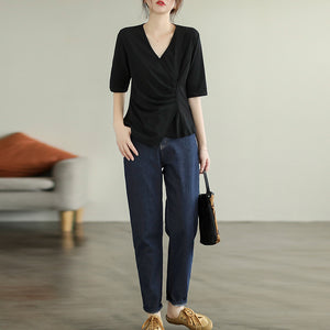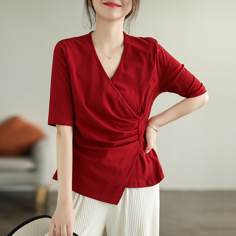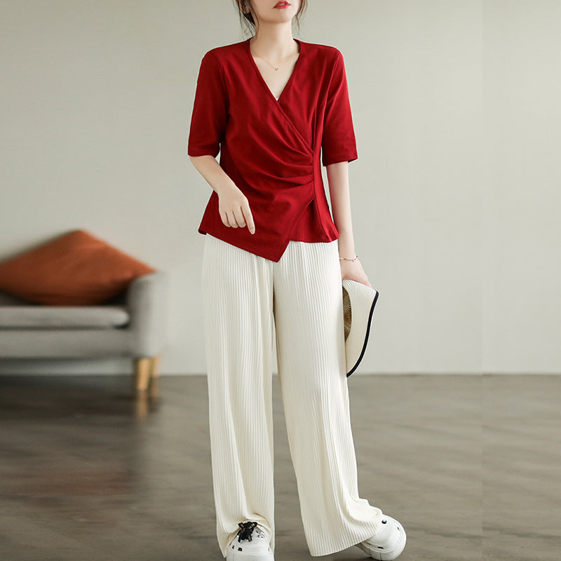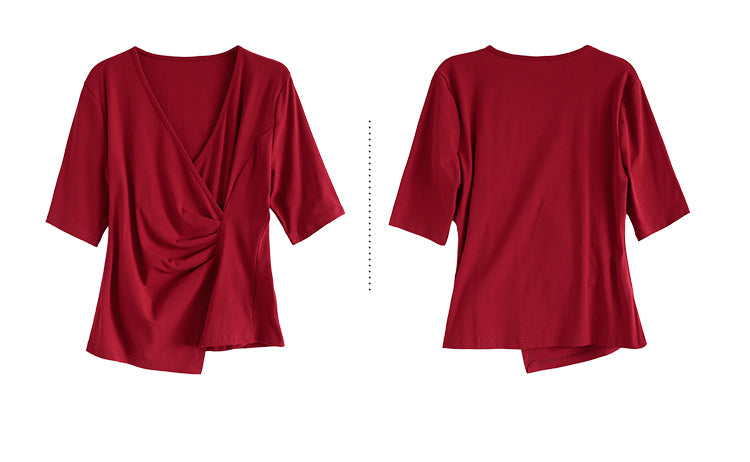 Áo T-shirt ngắn tay cổ V vạt chéo xếp ly - NU8303
