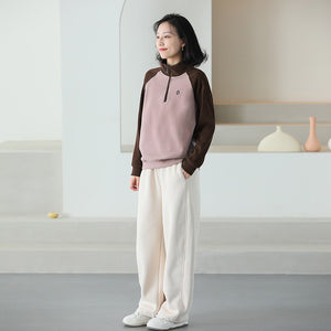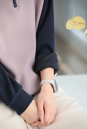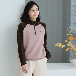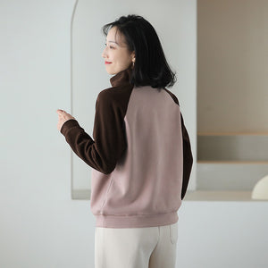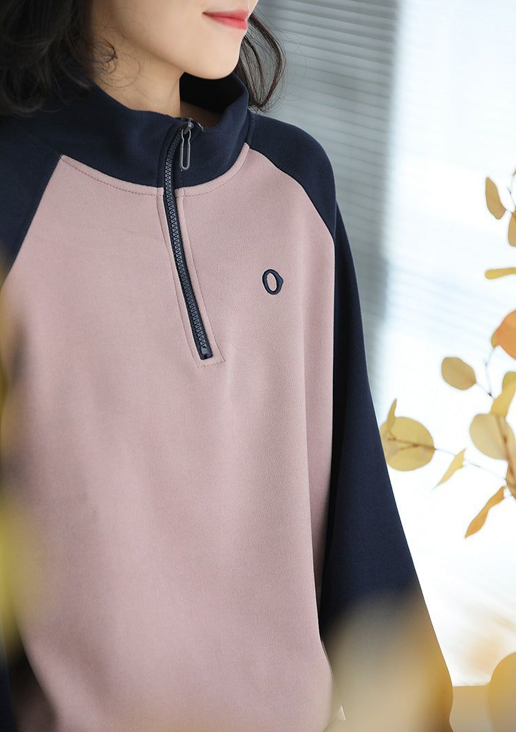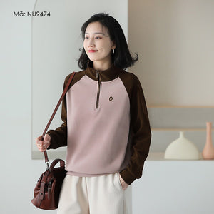 Áo T-shirt nỉ dài tay lệch mạu cổ đứng khóa kéo - NU9474