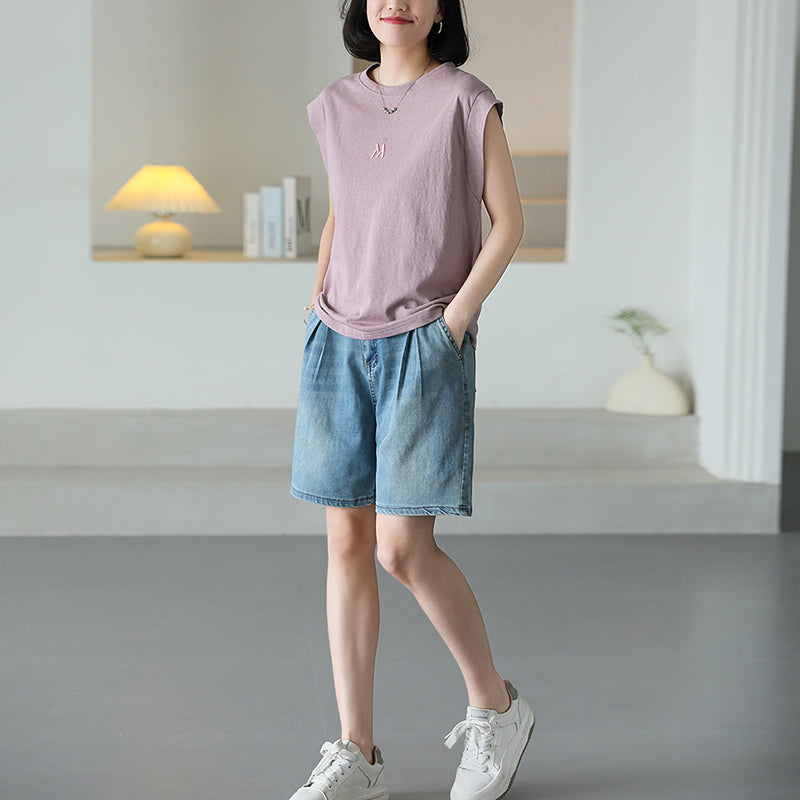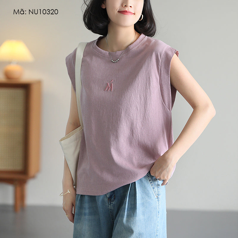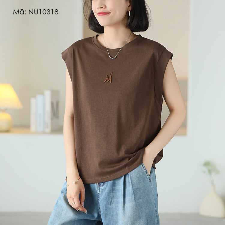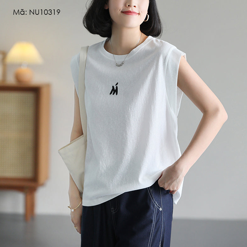 Áo T-shirt sát nách cổ tròn thêu chữ M - NU10317