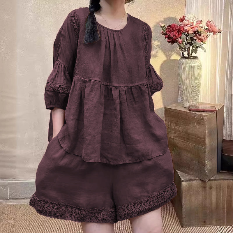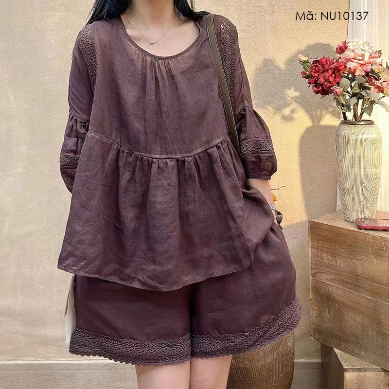 Bộ đồ linen gồm quần sooc và áo sơ mi tay lửng - NU10137