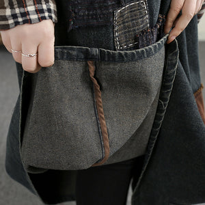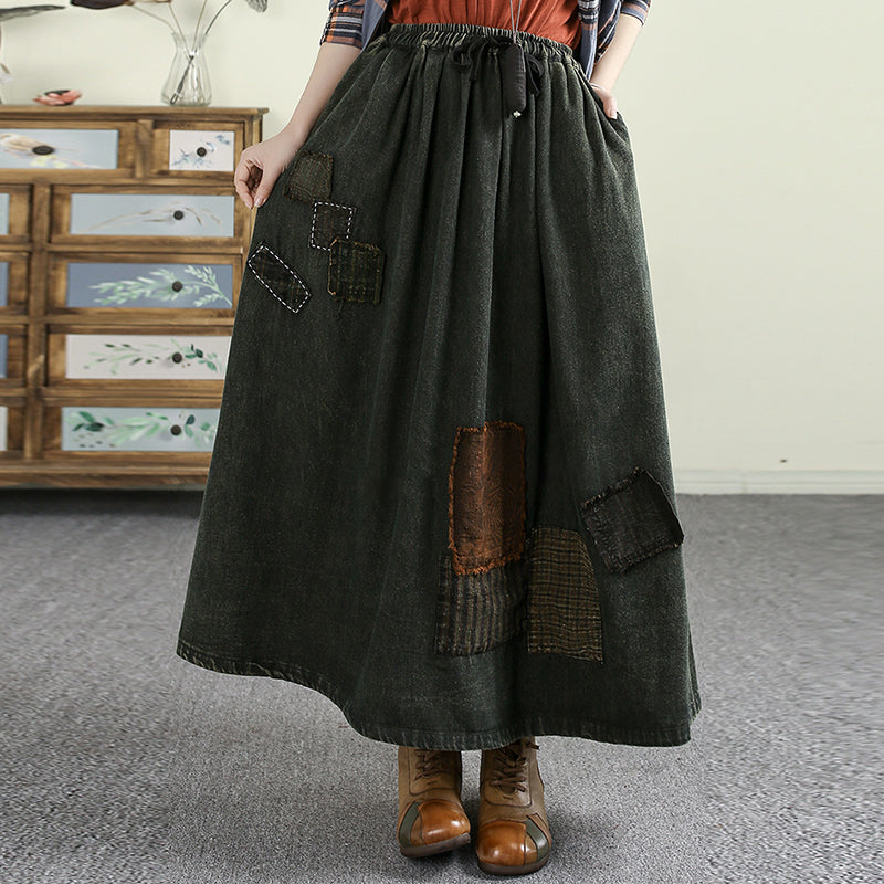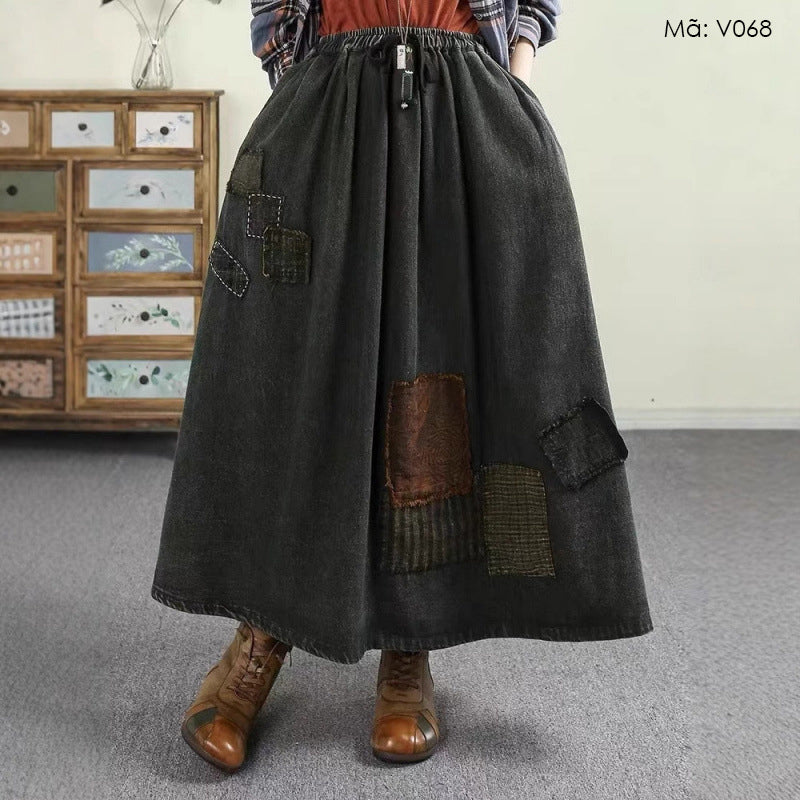 Chân váy denim lưng thun dây rút hai túi chéo - V068