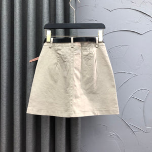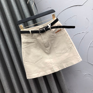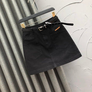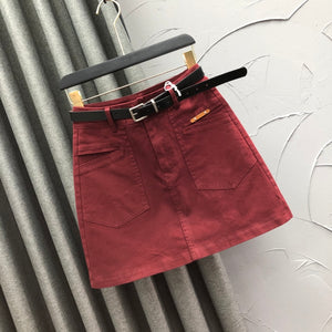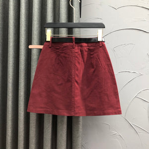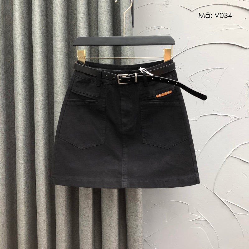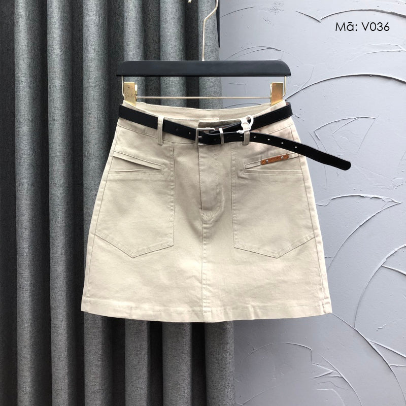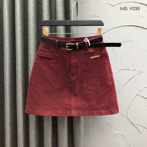 Chân váy ngắn retro hai túi kiểu kèm thắt lưng - V034