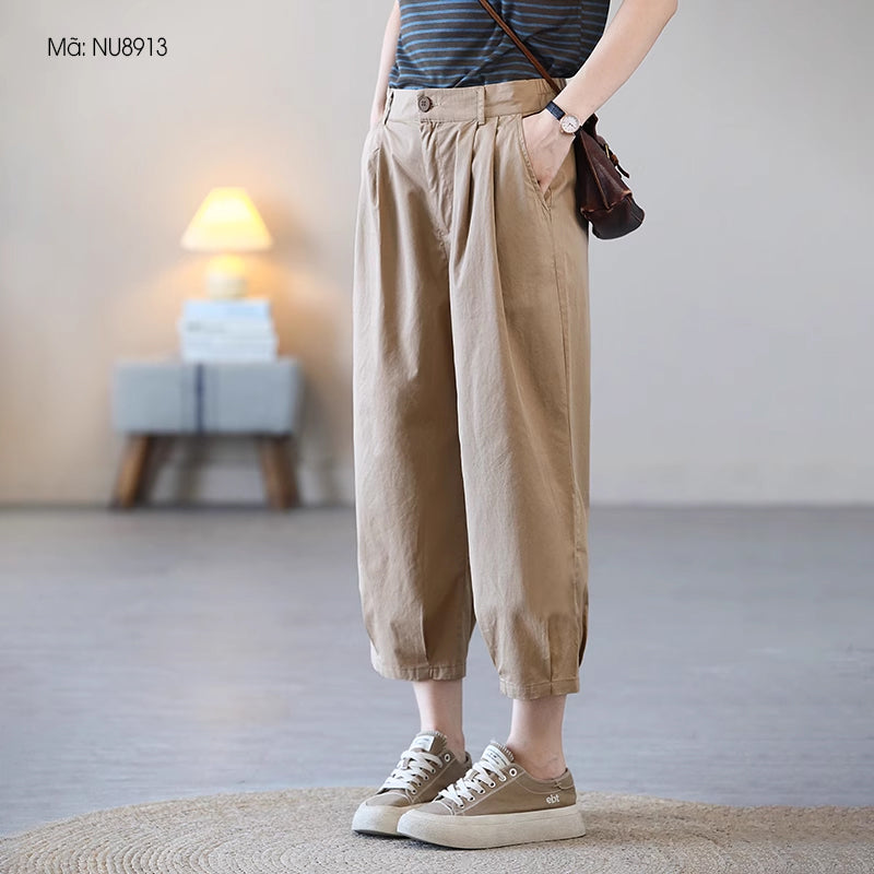 Quần baggy lưng thun ống túm xếp ly đính khuy - NU8913