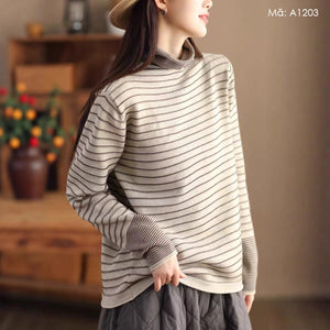 Áo T-shirt dài tay dệt kim cổ lọ kẻ sọc - A576