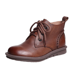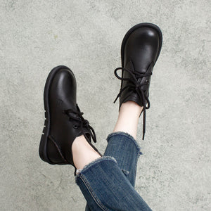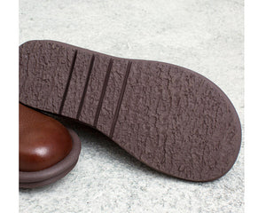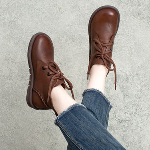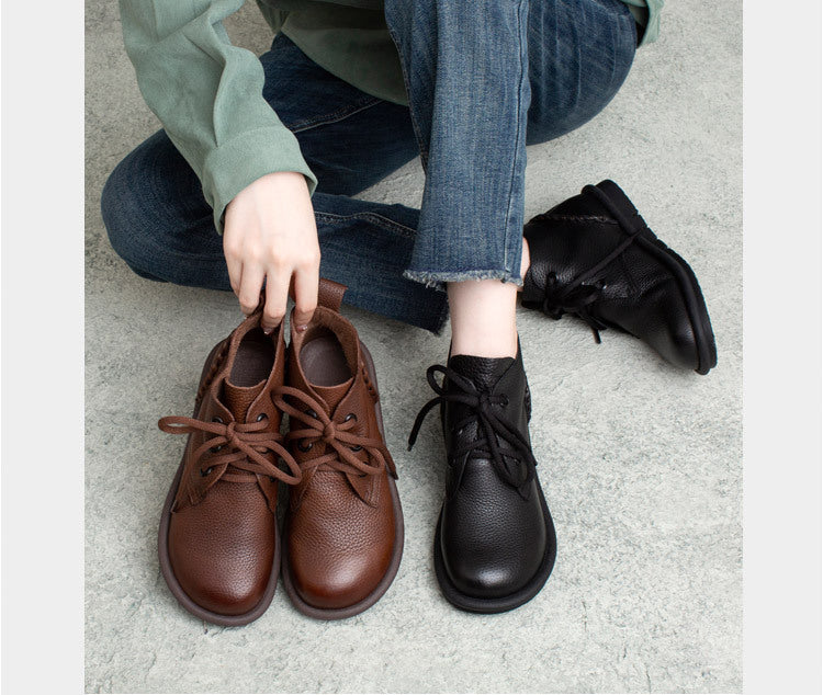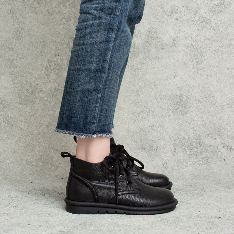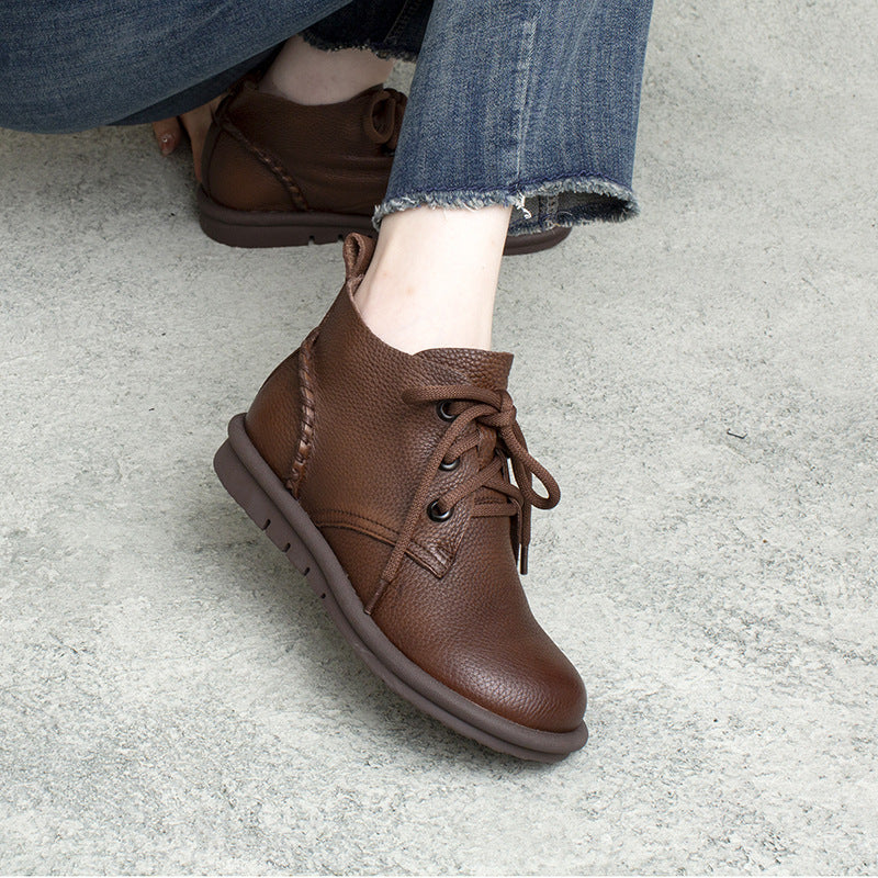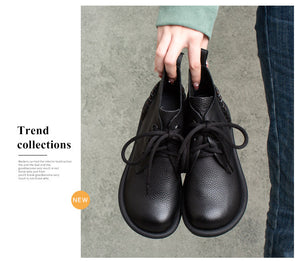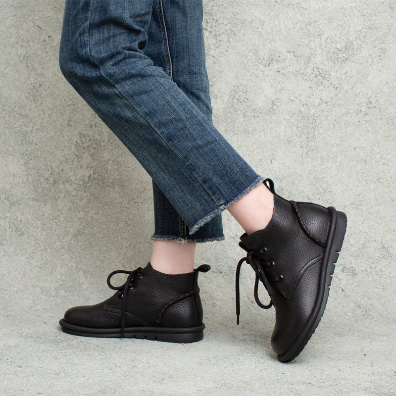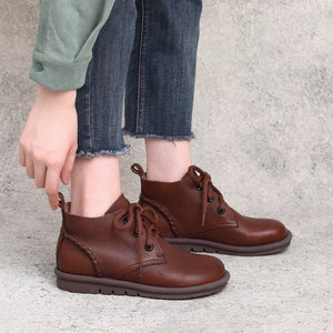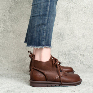 Giày da retro cao cổ đế bệt cột dây kiểu chỉ to - OD0935