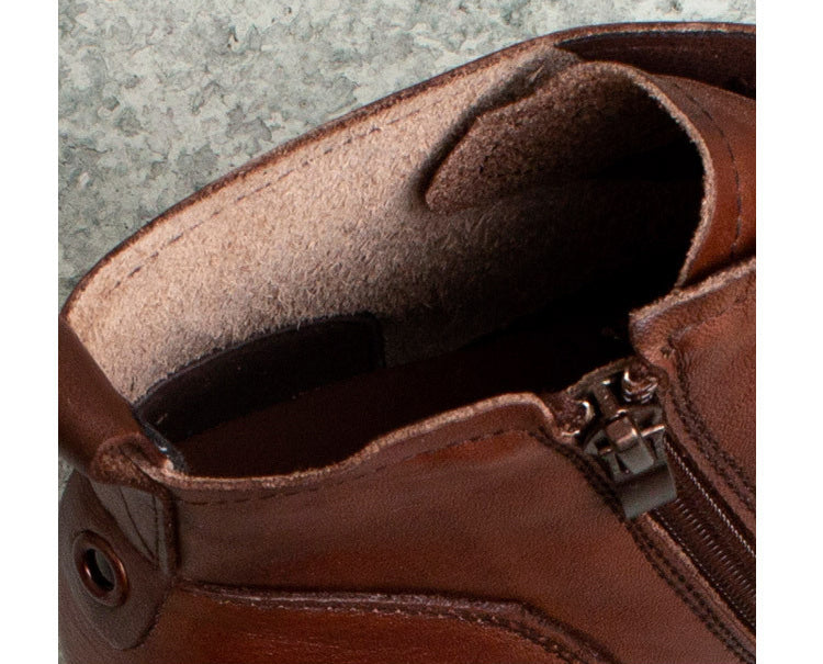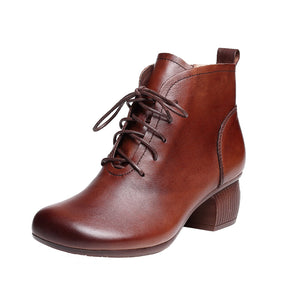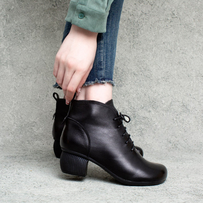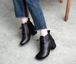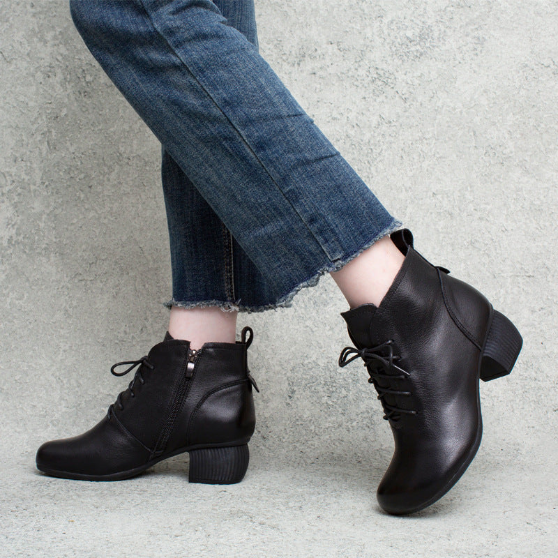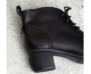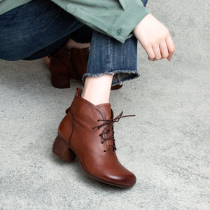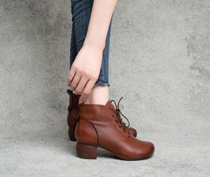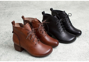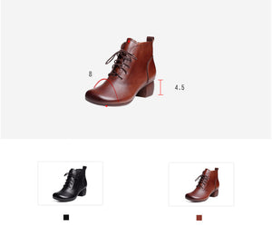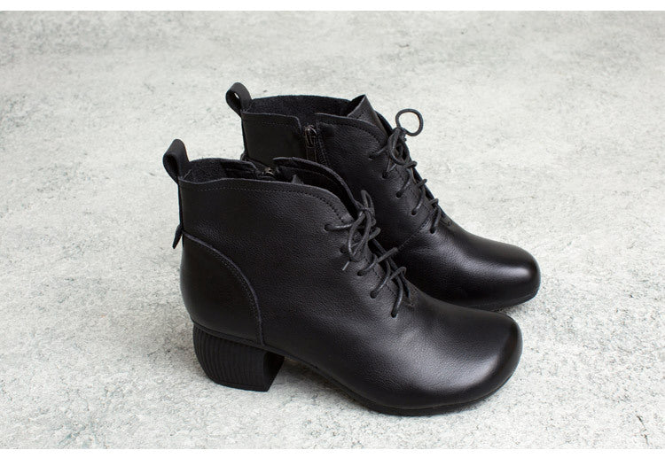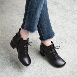Giày da retro cao cổ may tay khóa kéo cột dây - OD0964