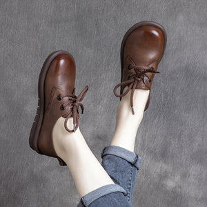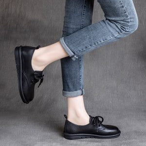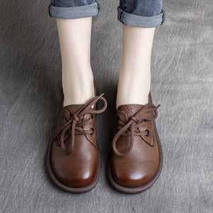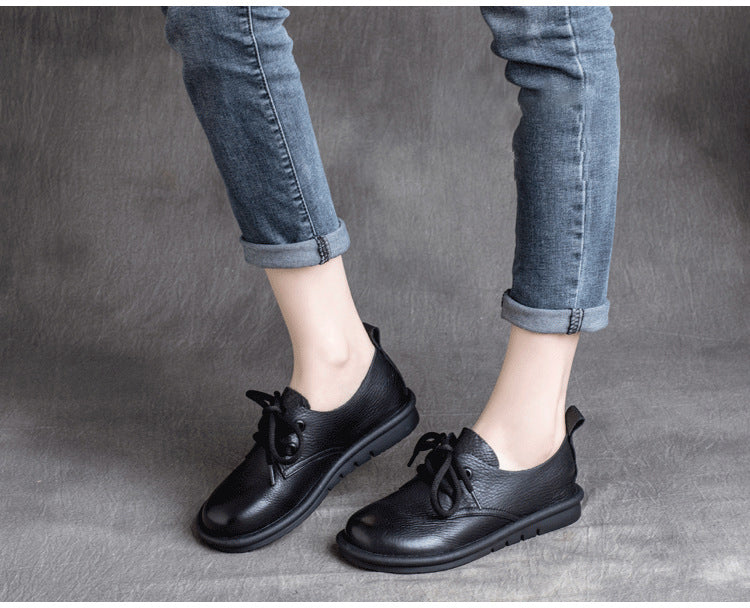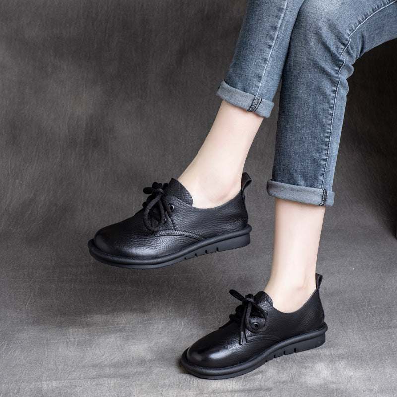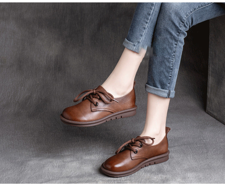 Giày da retro đế bằng cột dây bo tròn - OD0833