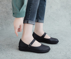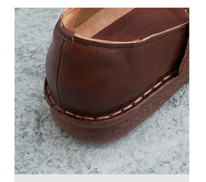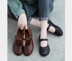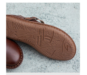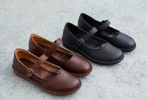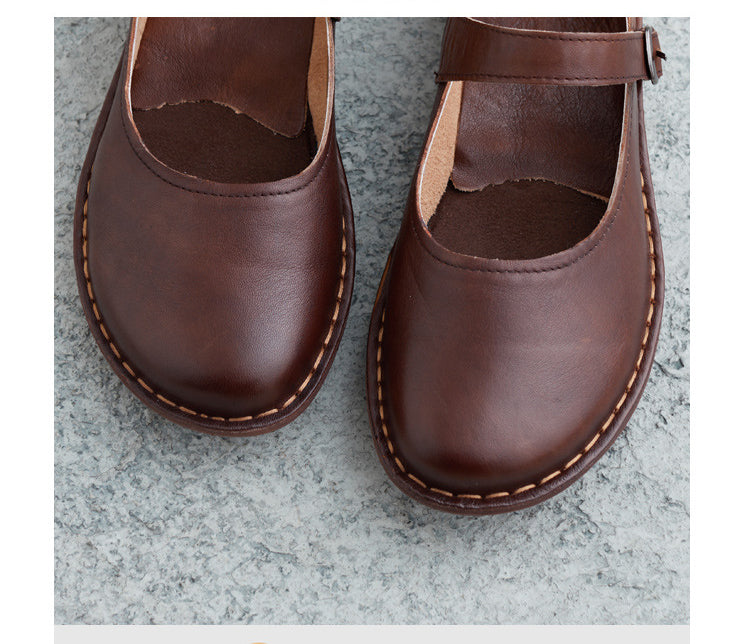 Giày da retro đế bằng may thủ công mũi tròn - OD1258