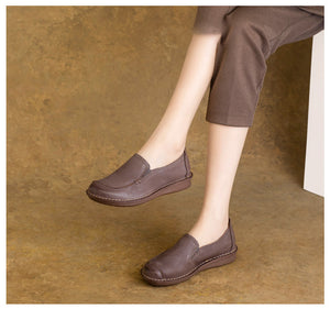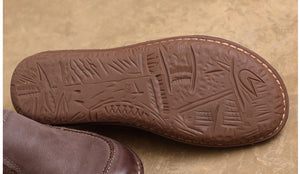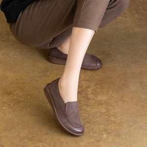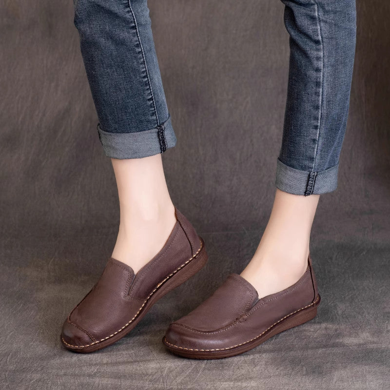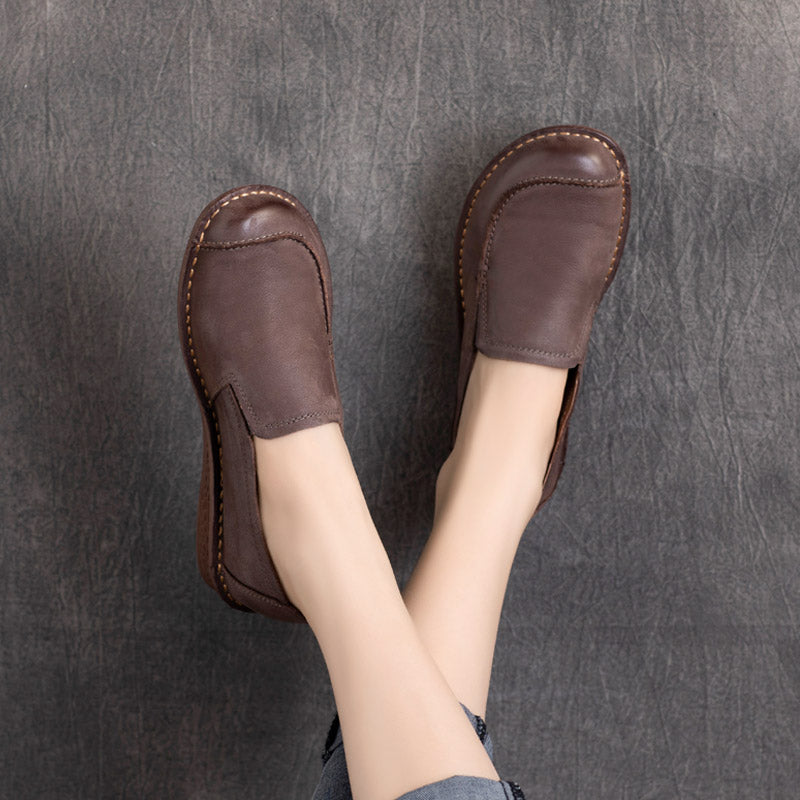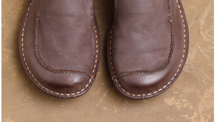 Giày da retro đế bằng mũi tròn may tay - OD1374