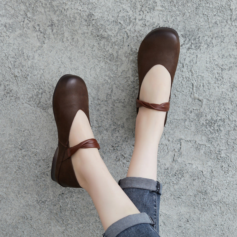 Giày da retro đế bệt quai kiểu vặn - OD1108