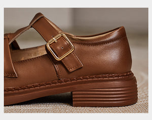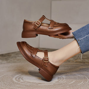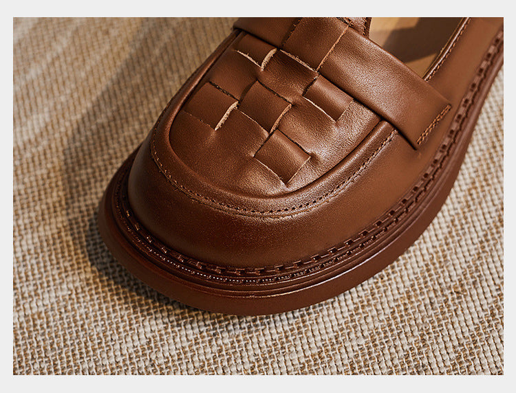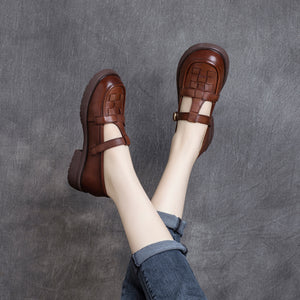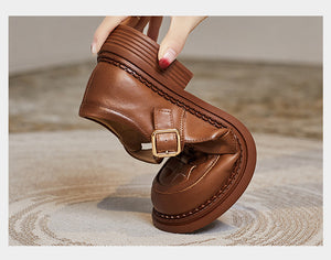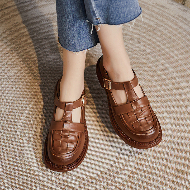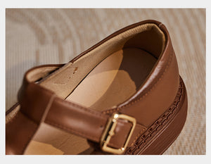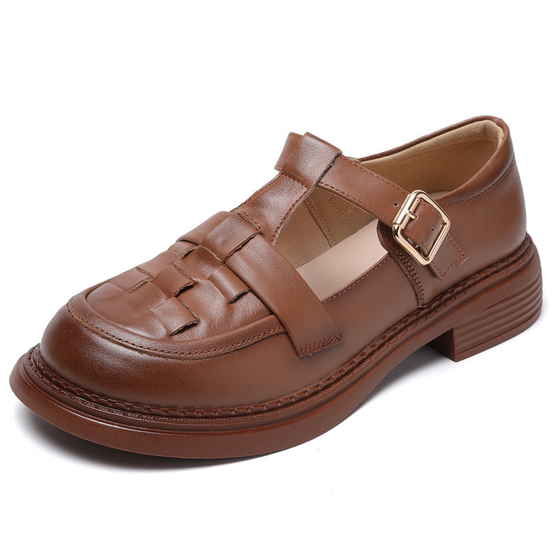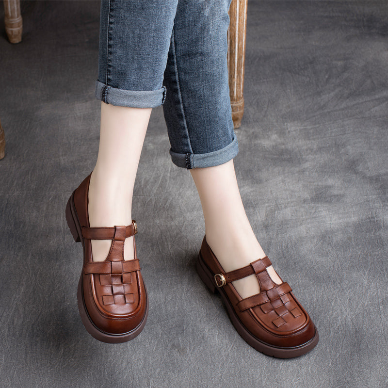 Giày da retro đế cao quai khóa gài kiểu đan caro - OD0685