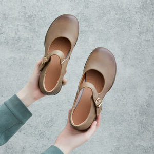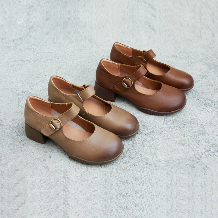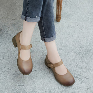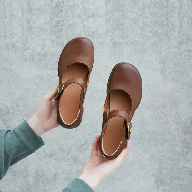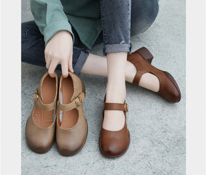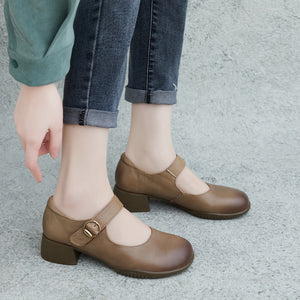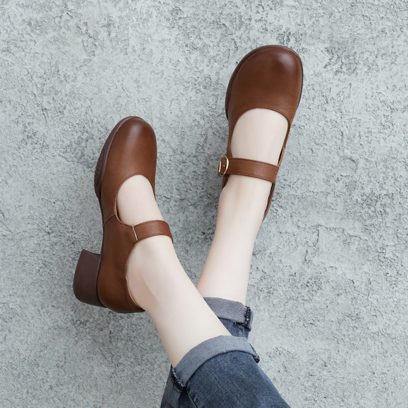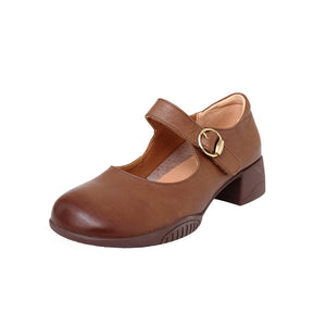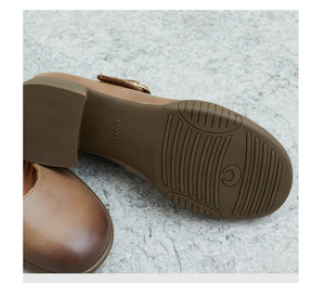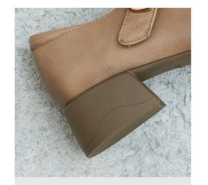 Giày da retro đế cao quai khóa gài mũi tròn - OD1234