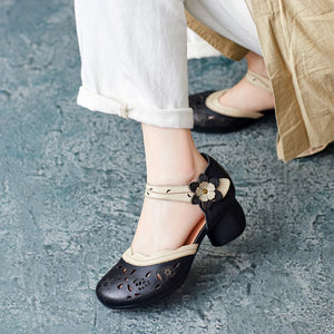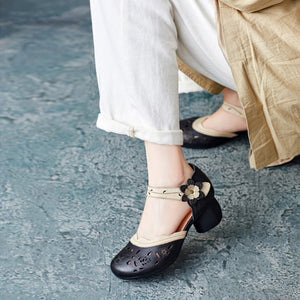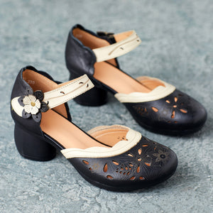 Giày da retro hoa văn khắc tay quai lệch màu - G034