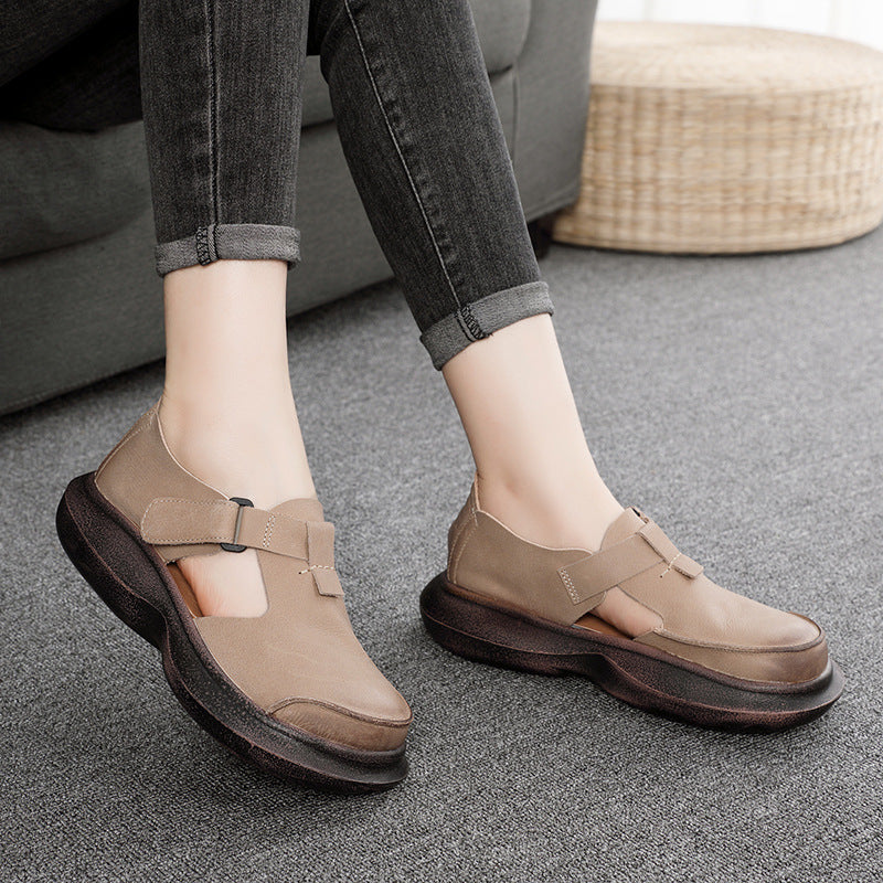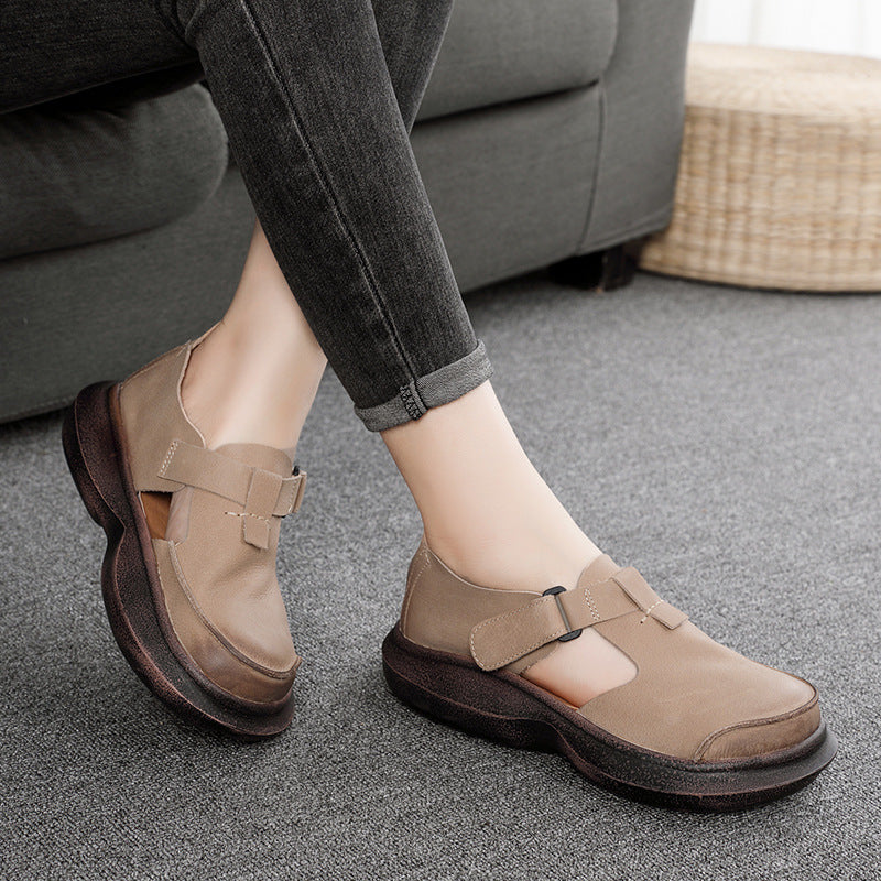 Giày da retro Sneaker để bằng quai dán - OD0655