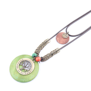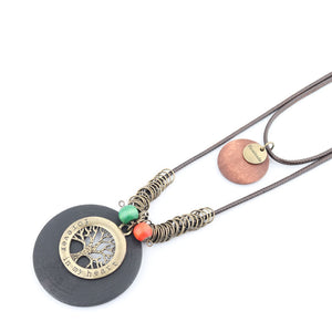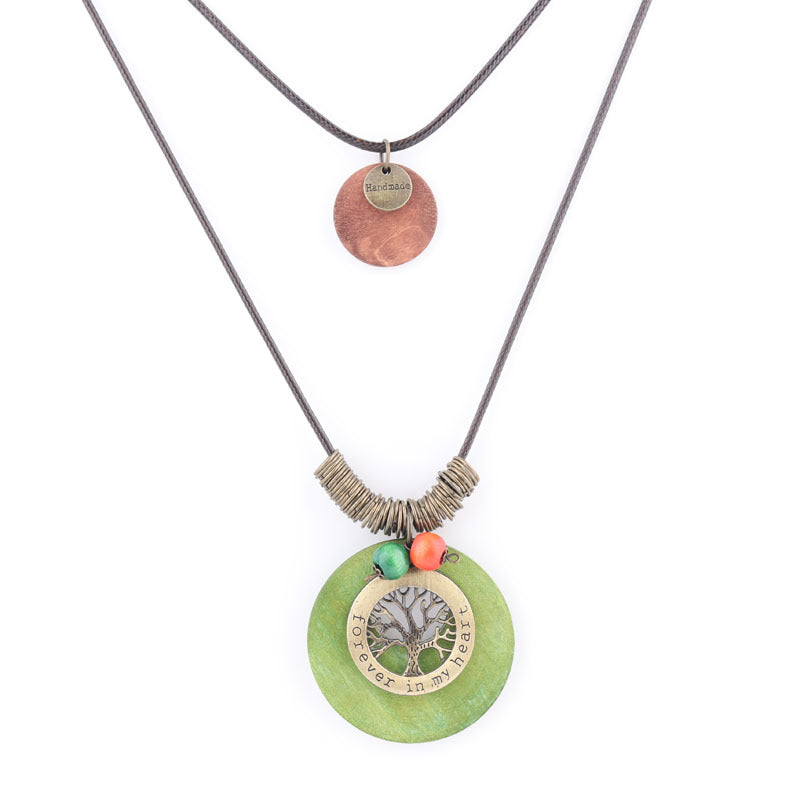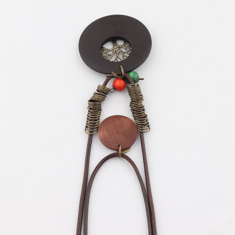 Vòng cổ retro mặt gỗ cây đa - NU5264